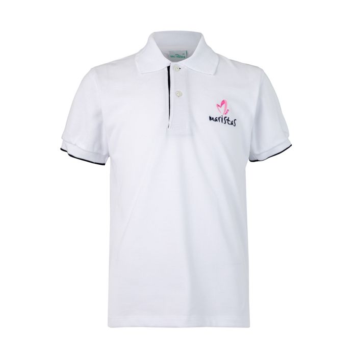 • Polo colegial de manga corta, realizado en pique con tapeta interior en color marino.